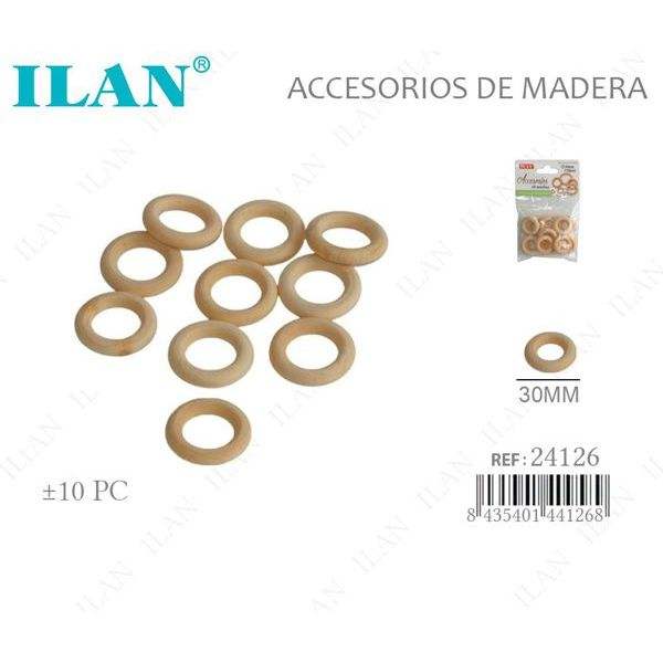 Anillos de madera Ilan de 30 mm, 10 piezas, para manualidades y decoración