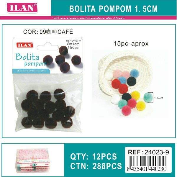 Pompones de Lana Ilan de 1.5 cm, Color Marrón, para Decoración y Manualidades