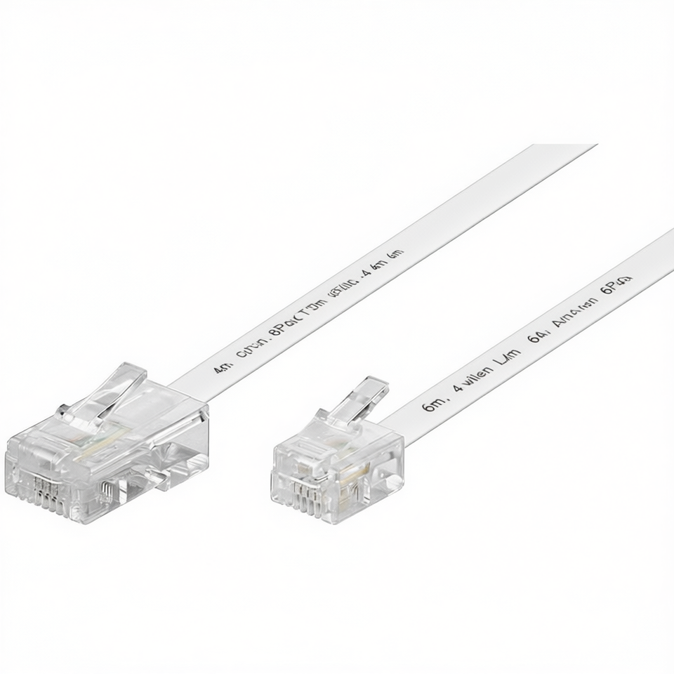 Cable de Conexión Modular Iluminado de 4 Pines, 8P4C a 6P4C, 6m, Blanco, para Sistema de Conferencias