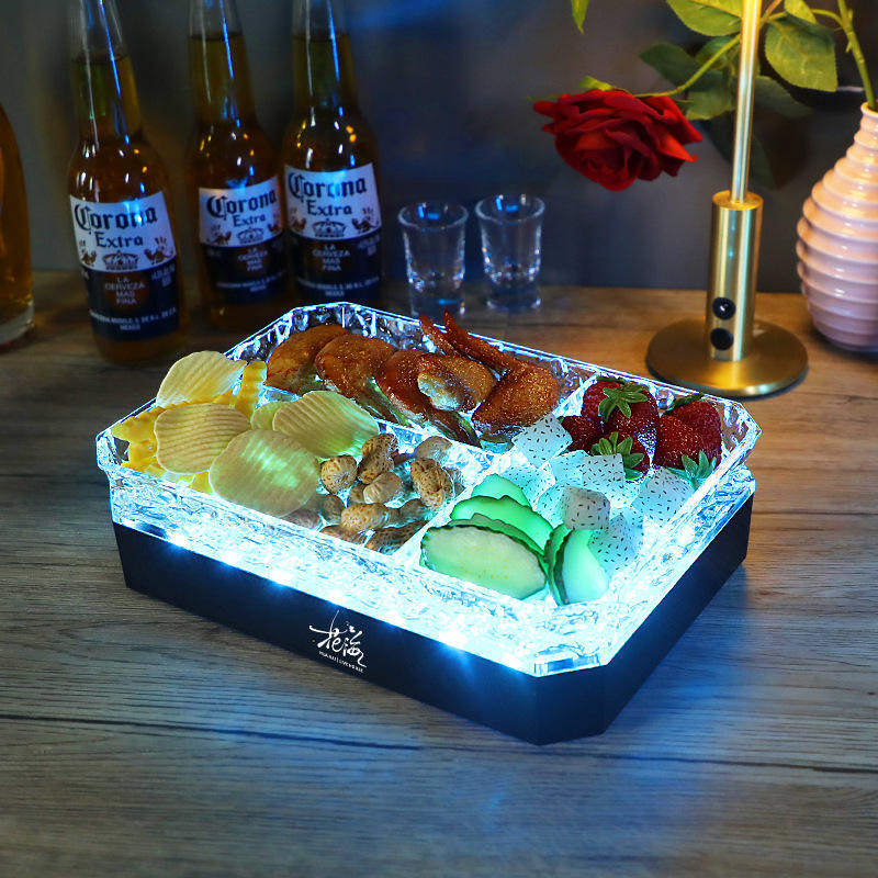Plato Rectangular Iluminado para Frutas, Plato para Aperitivos LED, Funciona con Batería, Vajilla para Fiestas