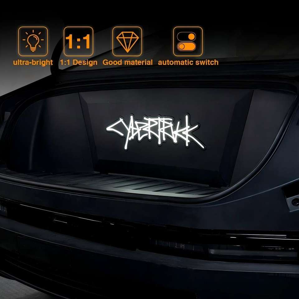 Emblema LED iluminado para el maletero y tira de luz ambiental para Tesla Cybertruck