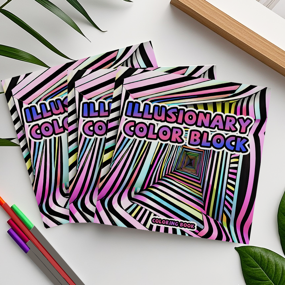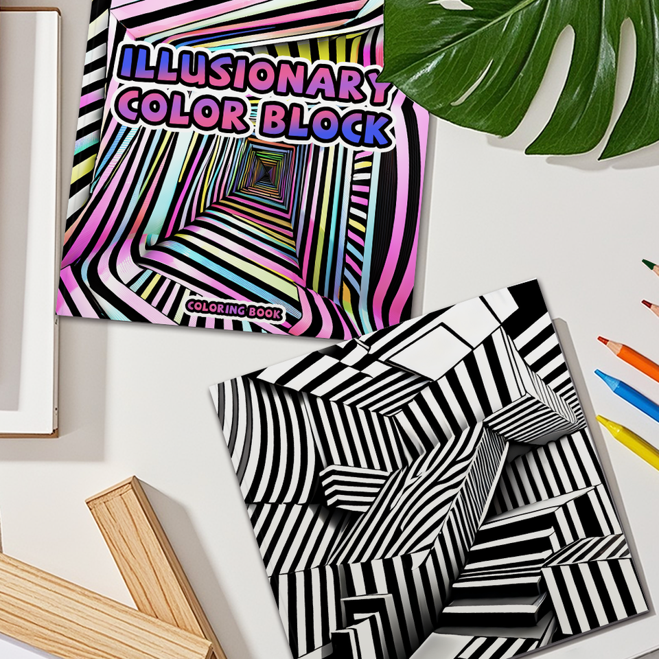 Libro de dibujo de bloques de Color ilusorio, libro de dibujo de arte geométrico Trippy, libro de dibujo de ilusión óptica creativa para adultos