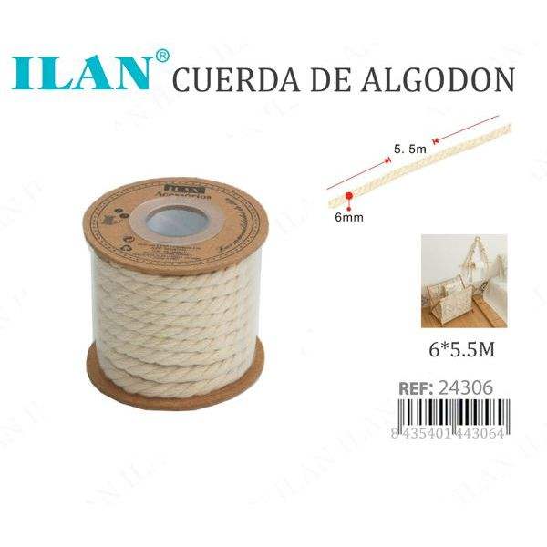 Cuerda de algodón Iln de 6 mm x 5,5 m para manualidades y decoración