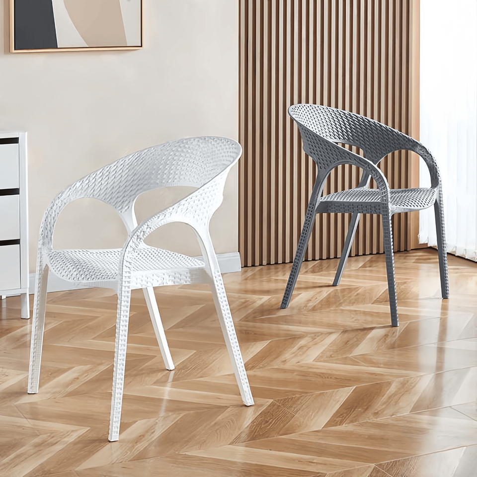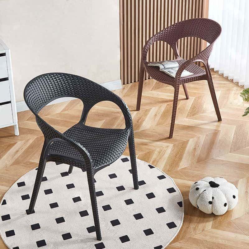 Silla de Patio de plástico PP marrón apilable con diseño de ratán de imitación con respaldo curvo para jardín, balcón, patio trasero