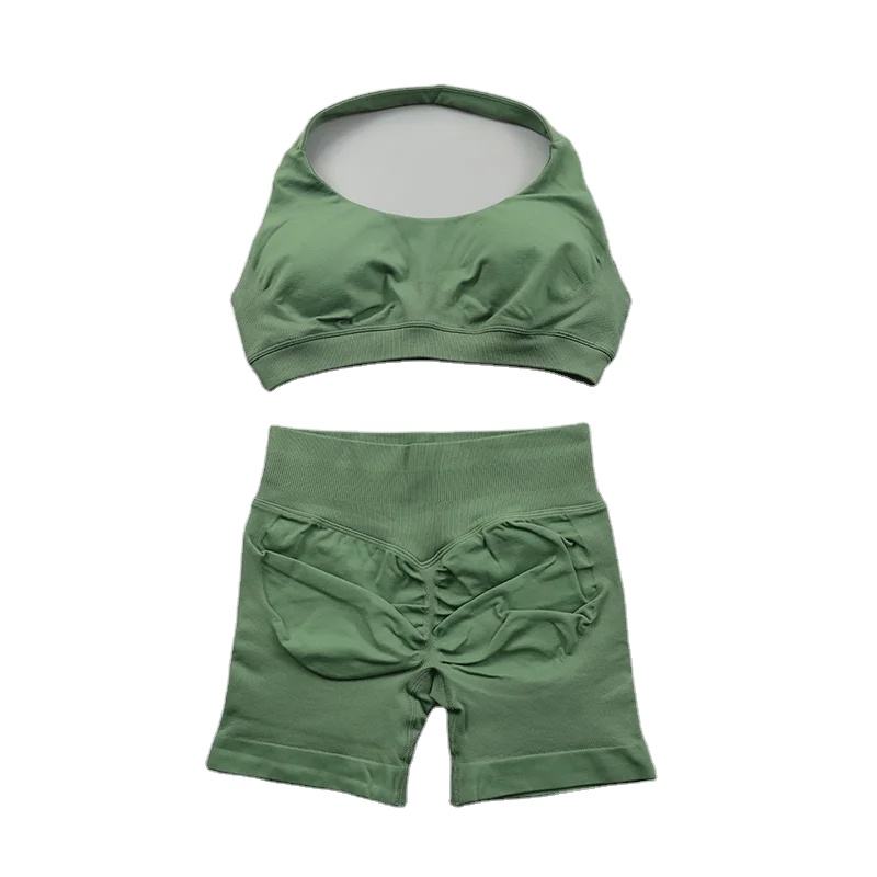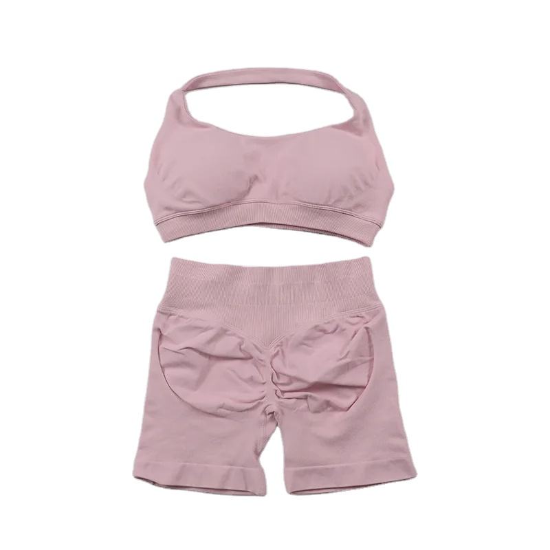 Impact Shorts Sets Yoga Gym Set Mujeres 2PCs Halter Sujetador deportivo Scrunch Butt Gym Shorts Set Ropa de entrenamiento Ropa deportiva de verano