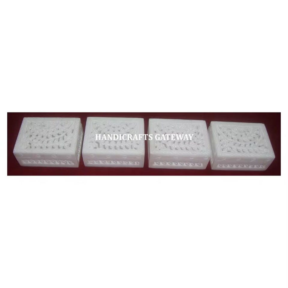 Importador y exportador de cajas de joyería de forma rectangular tallada en mármol blanco hecho a mano para decoración del hogar y regalo de negocios