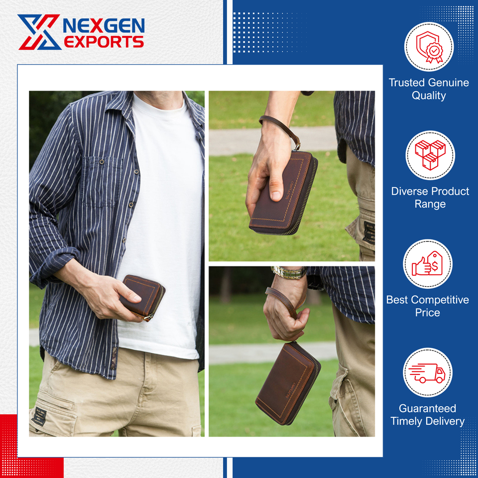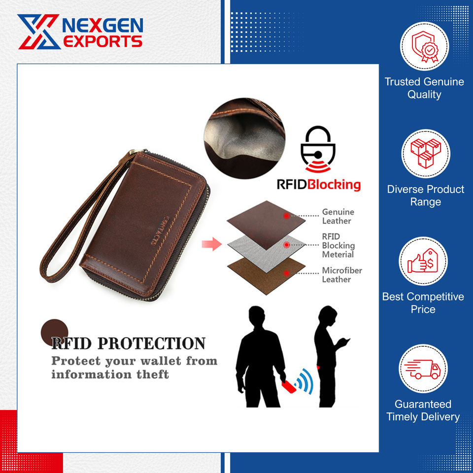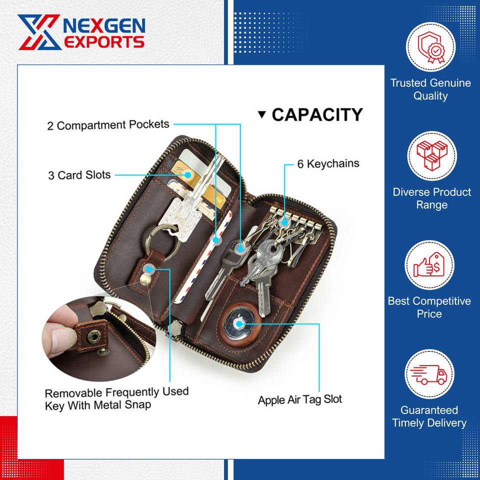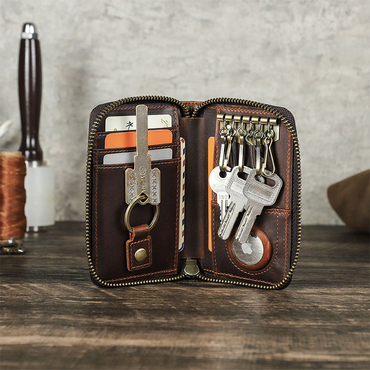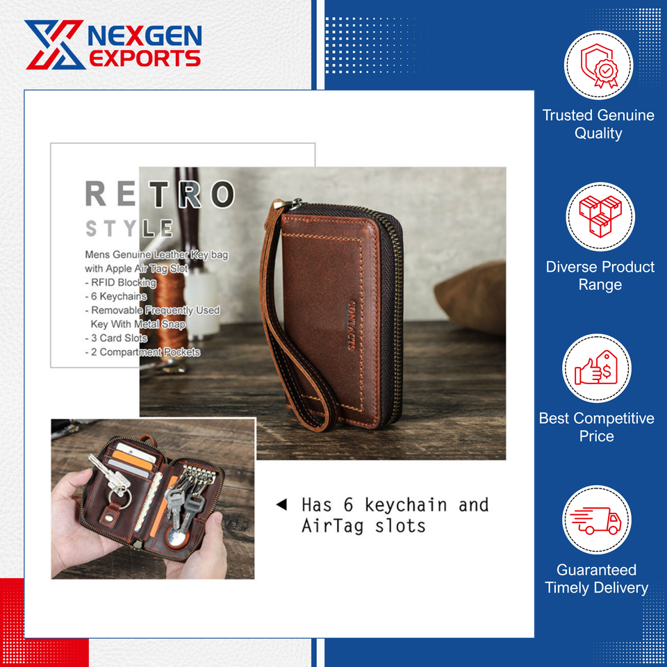 Porta Llaves de Coche Vintage de Cuero PU con Ranuras para Tarjetas, Bloqueo RFID, Cierre de Cremallera, Diseño de Letras, Bajo Costo