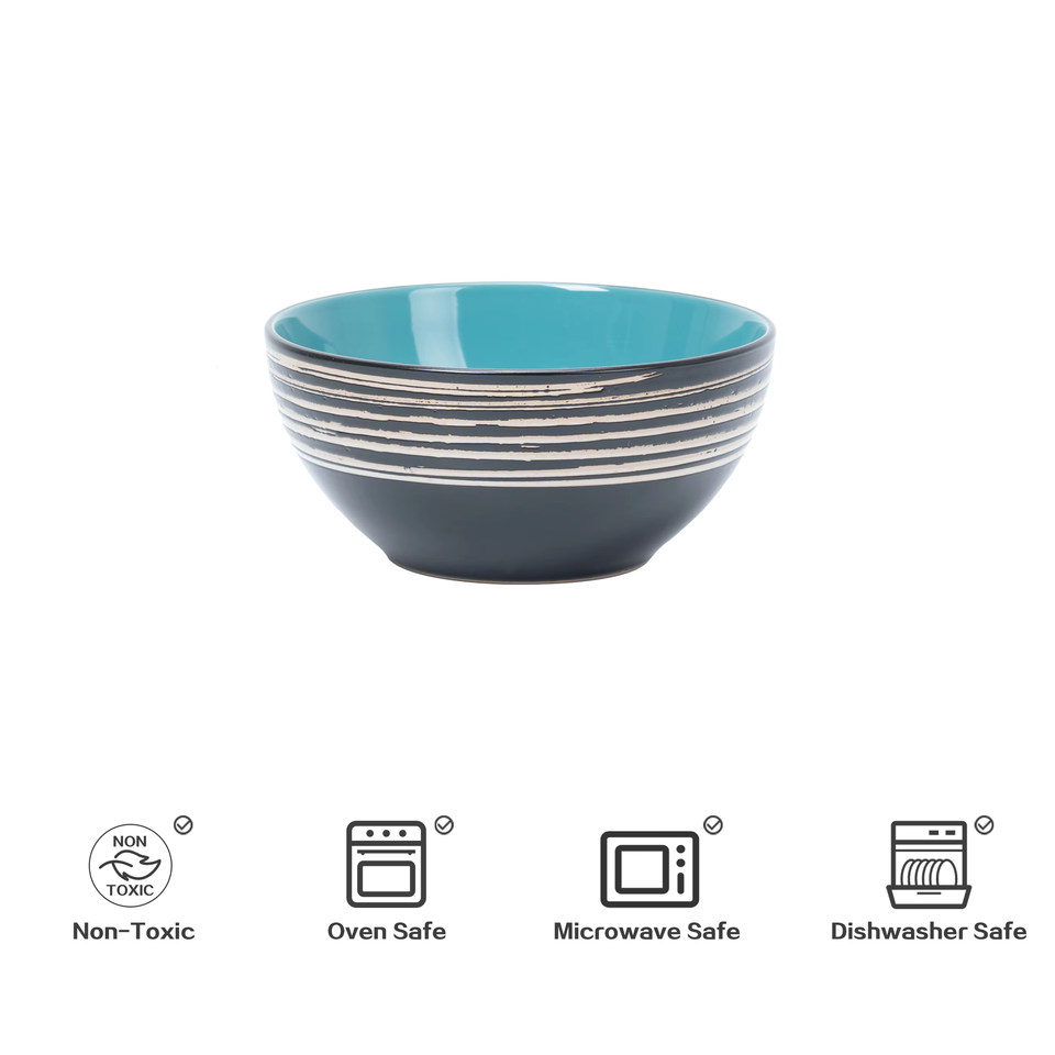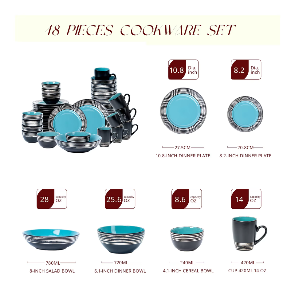 En septiembre, el hotel promociona juegos de platos redondos de cerámica azul para ensaladas, postres y vajilla.
