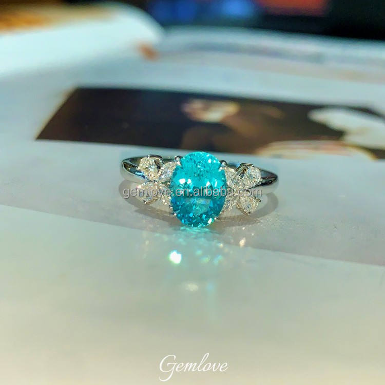 ¡En stock! 2.11CT Paraiba Lab Diamond Ring - PT950 Corte ovalado, joyería de boda al por mayor
