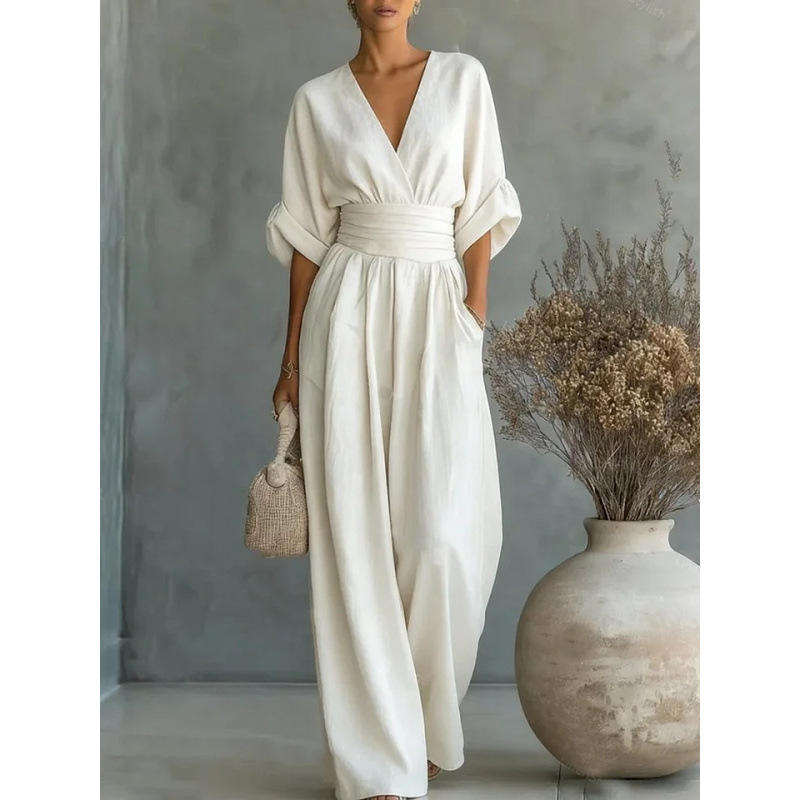 En Stock, Mono Elegante con Cuello en V y Cintura Ajustada para Mujer, Primavera-Verano 2026, Estilo Europeo Americano, Traje de Una Pieza