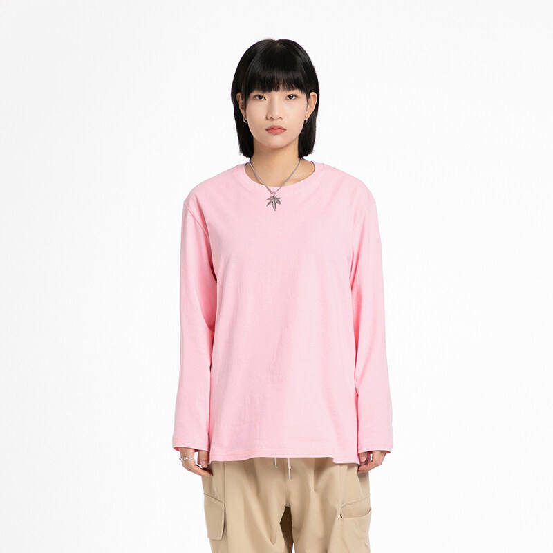 En stock 230 Gsm manga larga 100% algodón cuello redondo Camiseta pesada calidad Unisex peinado camiseta para hombres