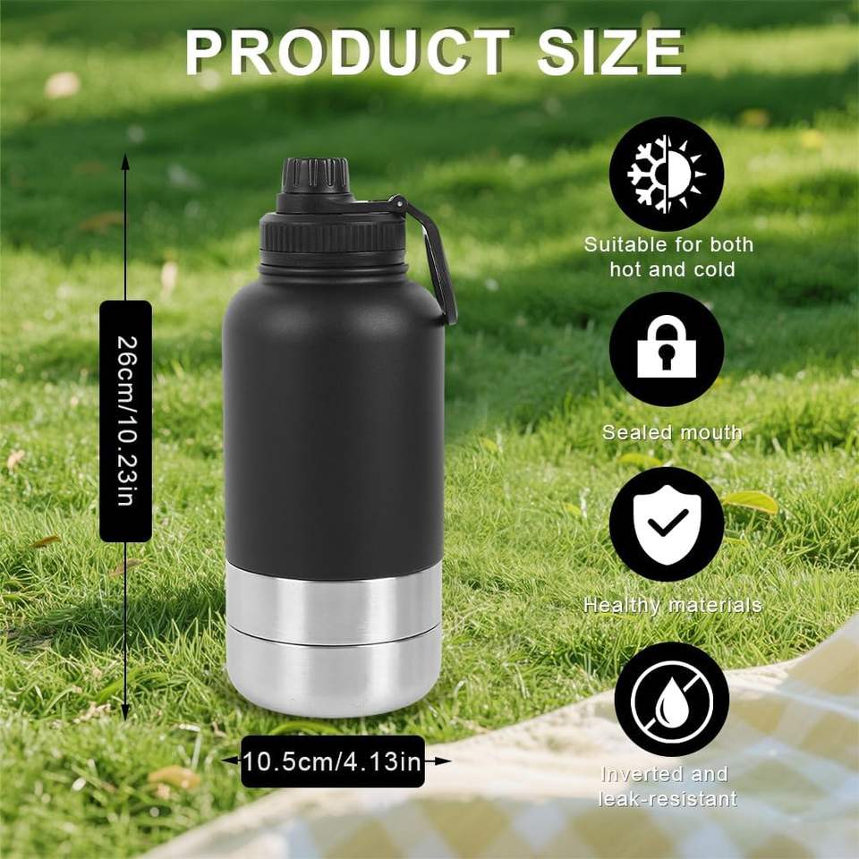 En Stock 3 en 1 32oz 64oz Botella de agua portátil para perros Cuencos Acero inoxidable Aislado Accesorios de viaje Mascota para acampar