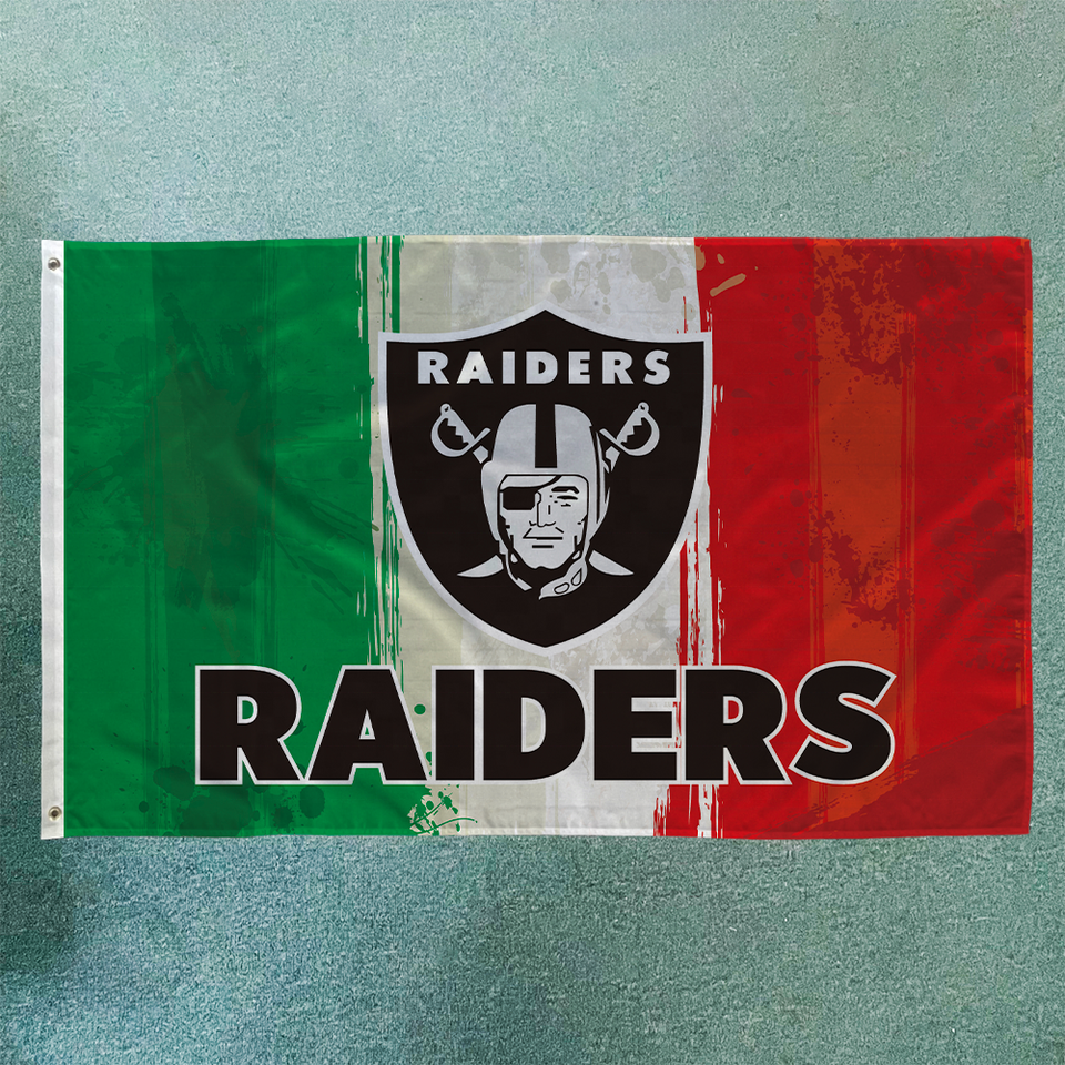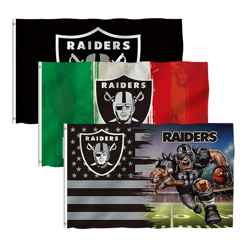 Bandera de equipo de fútbol de 3x5 pies, Bandera de Raiders de diseño personalizado de alta calidad, bandera deportiva de poliéster 100%