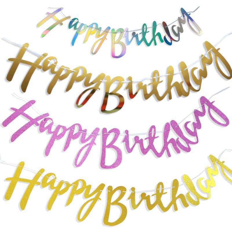 Bandera de fiesta de cumpleaños, decoración de Ambiente, flor de tirar, decoración de Año Nuevo, banner de papel con letras, disponible