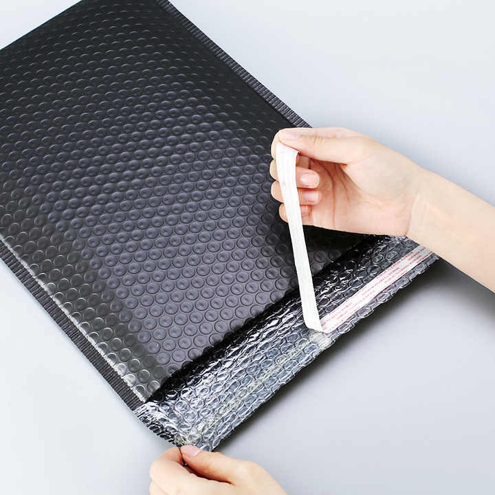 En stock: Sobres de burbujas de PVC BOPP negro mate, autosellables, para envíos por correo y mensajería.