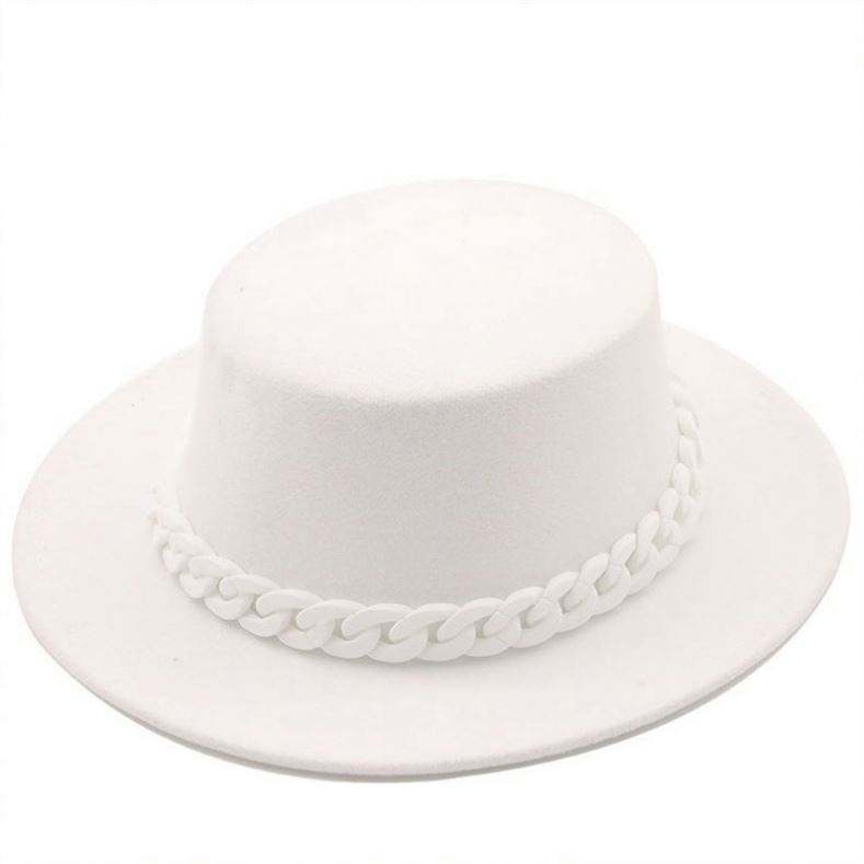 En Stock, Precio Económico, Sombrero Fedora de Fieltro 100% Lana para Mujer, Sombreros Fedora de Ala Ancha con Cadena