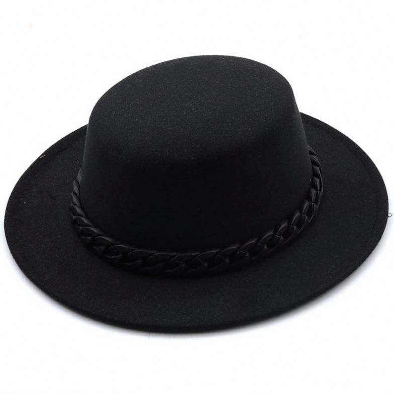 En Stock, Precio Económico, Sombrero Fedora de Fieltro 100% Lana para Mujer, Sombreros Fedora de Ala Ancha con Cadena
