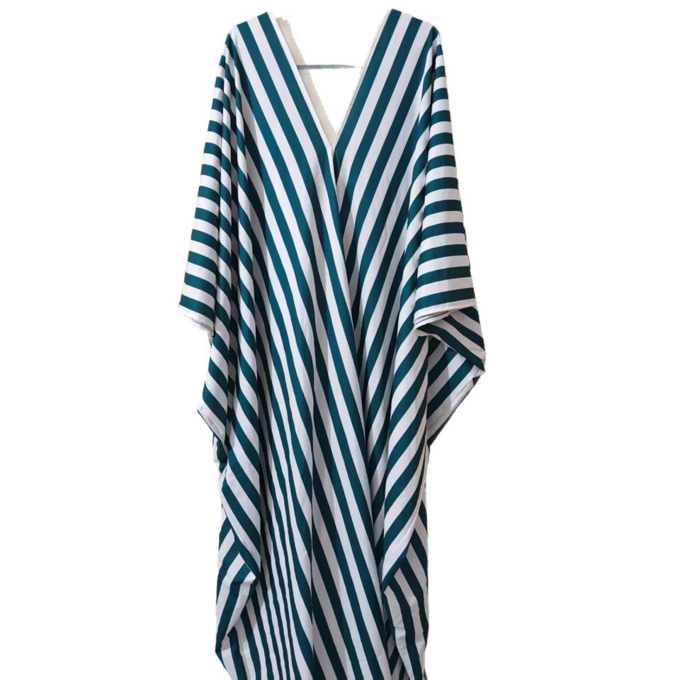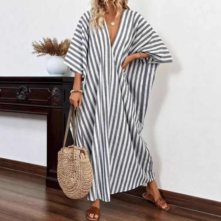 Vestido elegante a rayas con cuello en V profundo, estilo casual y holgado, antiestático, para mujer, disponible para envío transfronterizo a Europa y América.