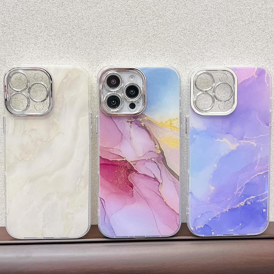 Funda de Celular con Efecto Mármol Electrochapado para iPhone 16 15 14 Pro Max, Funda de Lujo IMD para Samsung Serie S25 S24, Disponible en Stock