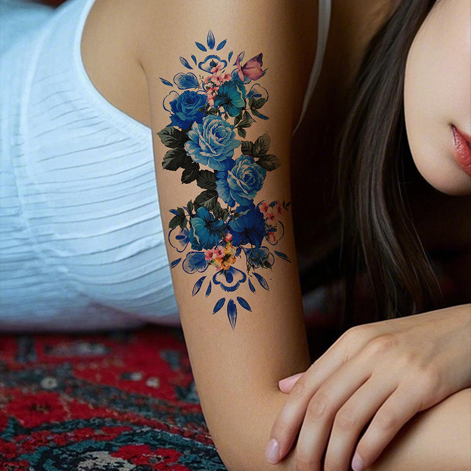 Pegatina de tatuajes temporales de media manga resistente al agua y de larga duración