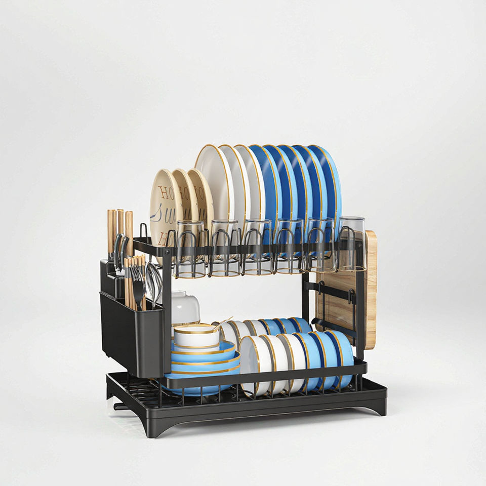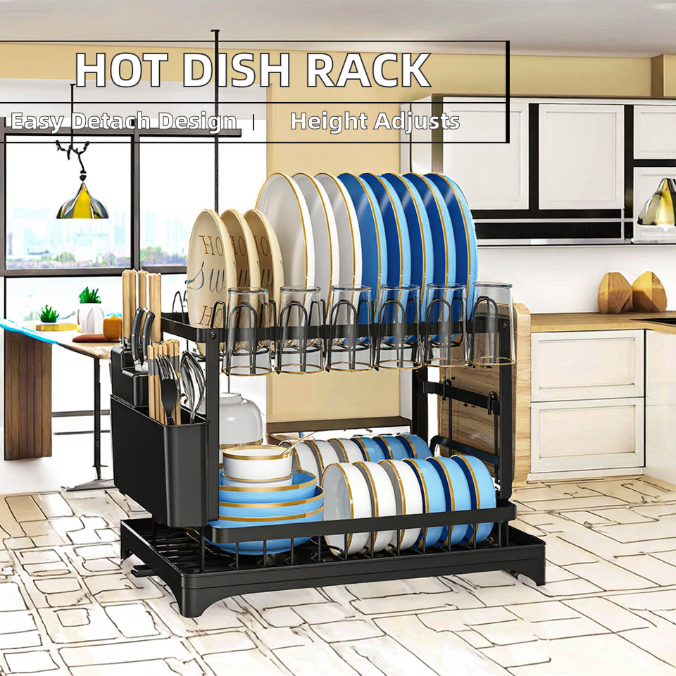 Escurreplatos de Almacenamiento de Cocina Tipo Soporte Desmontable con Altura Ajustable de Tres Niveles, Acero al Carbono Estilo Vintage no Plegable