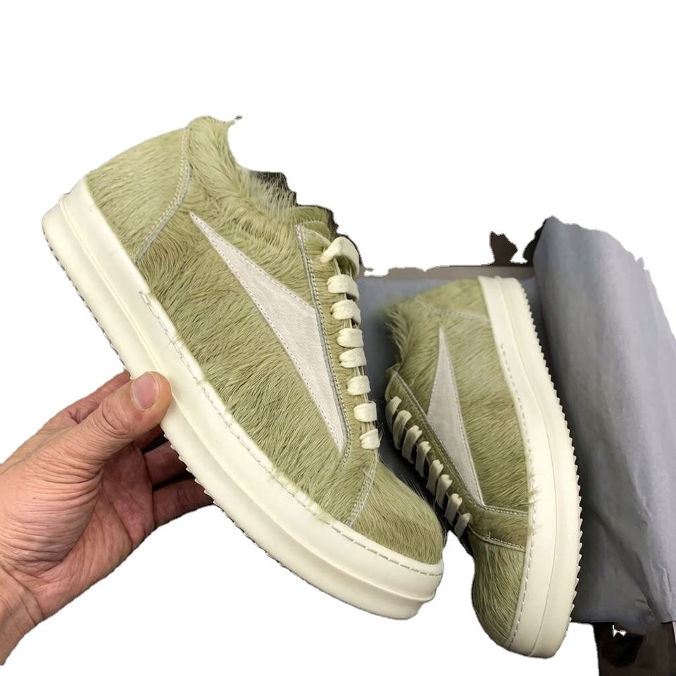Zapatillas bajas de cuero de lujo Owens para hombre y mujer, con cordones, suela gruesa, informales, planas, en stock, color negro