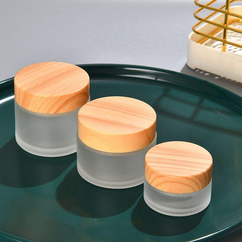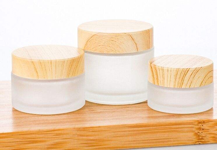 En Stock nuevo tipo gran oferta diseño contratado glaseado tarros de crema de bambú botellas de tamaño de viaje a granel tarros de almacenamiento de vidrio