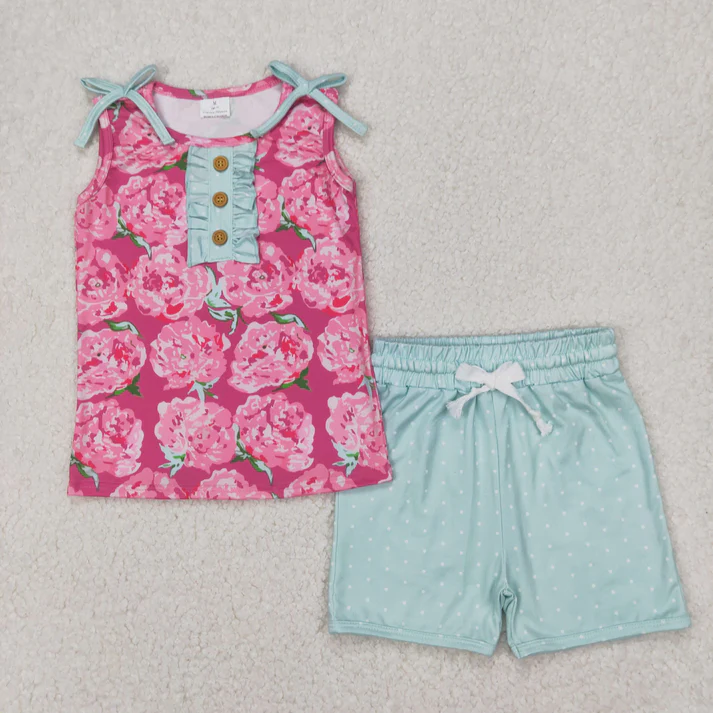 Conjunto de Ropa de Verano para Niñas, Top Rosa con Volantes y Pantalones Cortos, Disponible en Stock