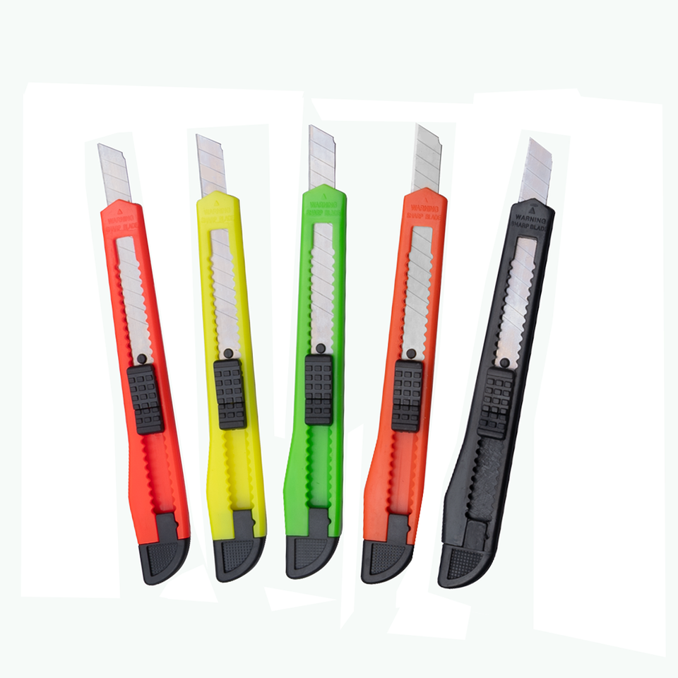 Cuchillo Multiusos de Plástico en Existencia, Hoja Desprendible de 9 mm con Bloqueo de Seguridad para Oficina, Escuela, Uso en Recortes