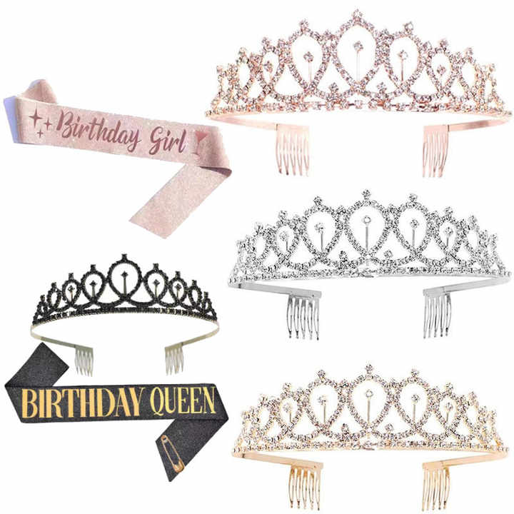 Diadema de aleación rosa para niña y corona de ceremonia con correa para el hombro embalada en bolsa para fiesta de cumpleaños