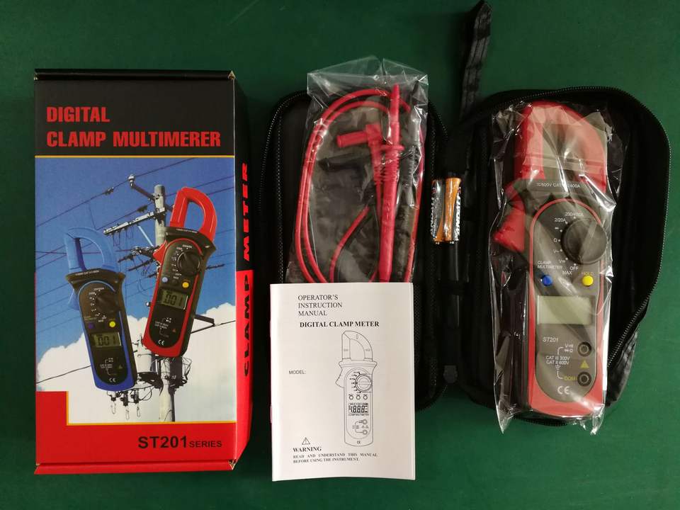 Multímetro digital con pinza amperimétrica ST201, medidor de voltaje y corriente de alta precisión ST201, multímetro digital Dt9205a, en stock