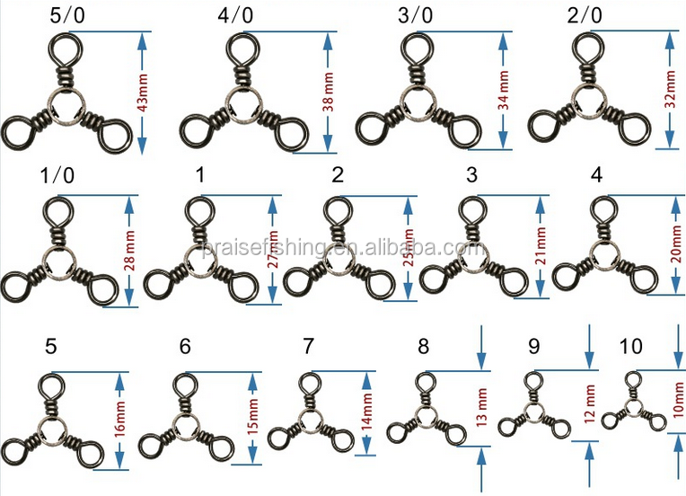 Aparejo de pesca de arrastre de fundición de agua salada, barril de pesca triple de tres vías, giratorios de 3 vías, broches giratorios de pesca