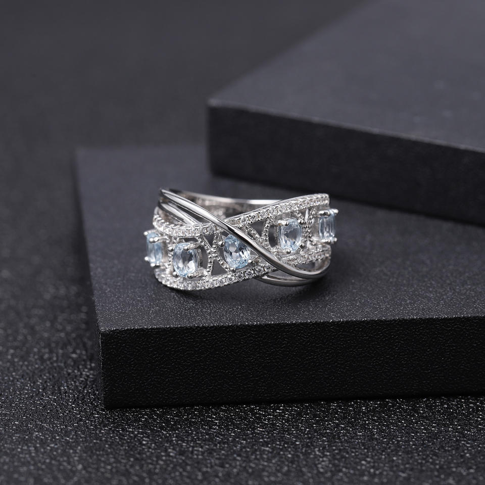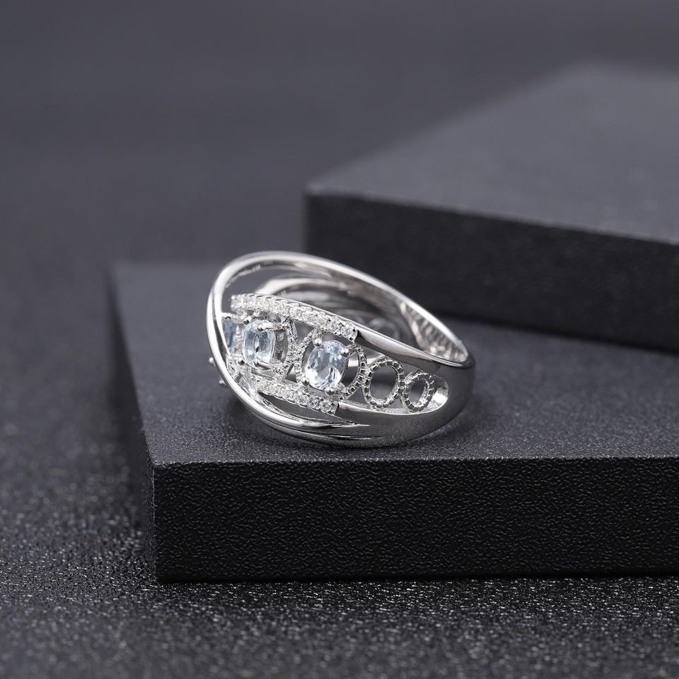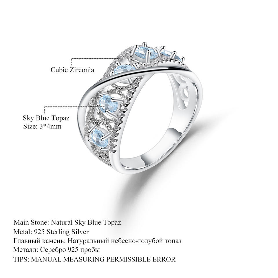 Anillo de Plata 925 con Incrustaciones de Cristal Azul Londres, Serie Vintage, Alta Elegancia, para Mujer, Venta Directa de Fábrica