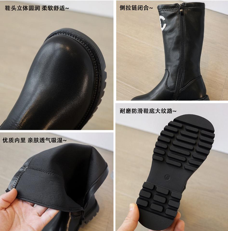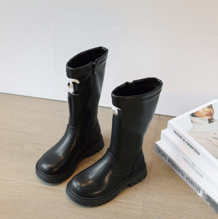 Botas Altas de Piel Negra para Niña, Estilo Princesa, para Primavera, Otoño e Invierno, Disponibles en Stock