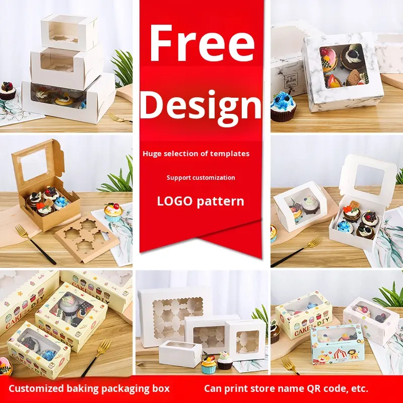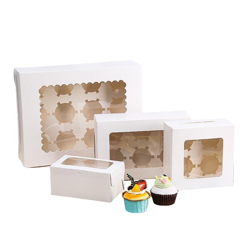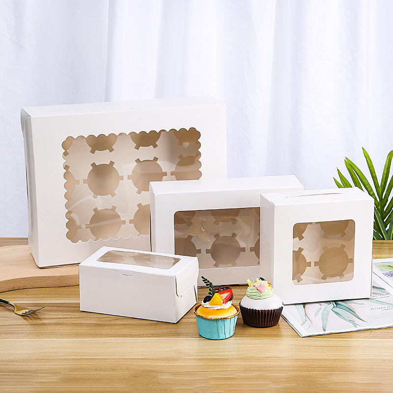En stock cajas cuadradas de papel para cupcakes con ventana, disponibles para 1/2/4/6/12/24 unidades, para uso alimentario