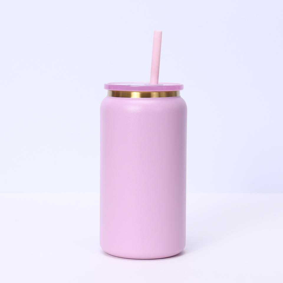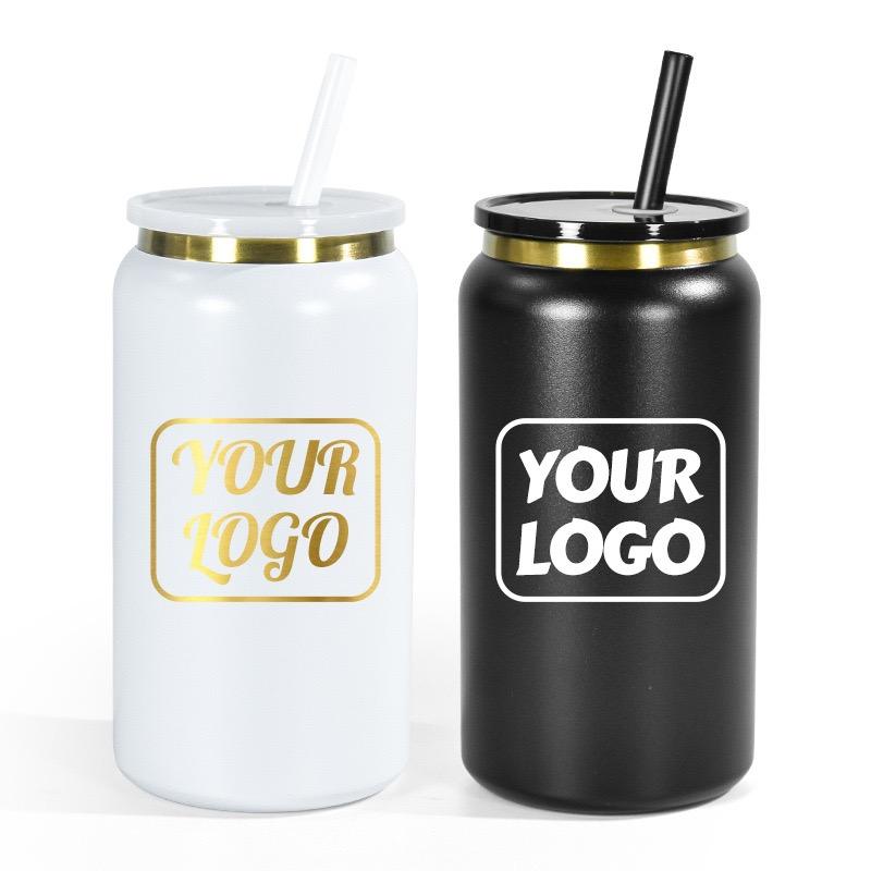 Vaso de Acero Inoxidable de 16 oz con Pintura Dorada Sublimada en el Interior, con Pajita y Tapa, para Smoothies, Cerveza y Café, Disponible en Stock