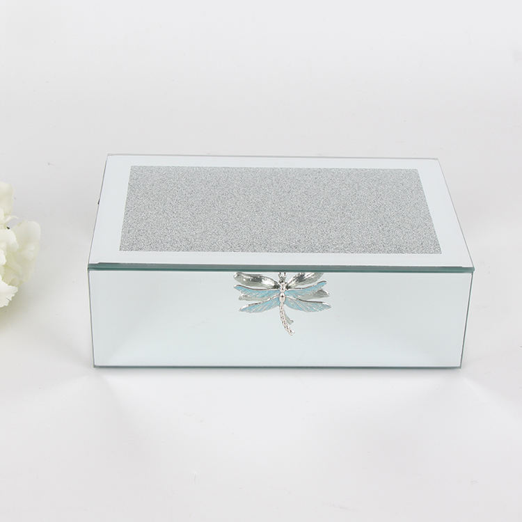 ¡En stock! Caja de joyería de cristal espejo de cristal mariposa al por mayor con exhibición de almacenamiento de terciopelo boda