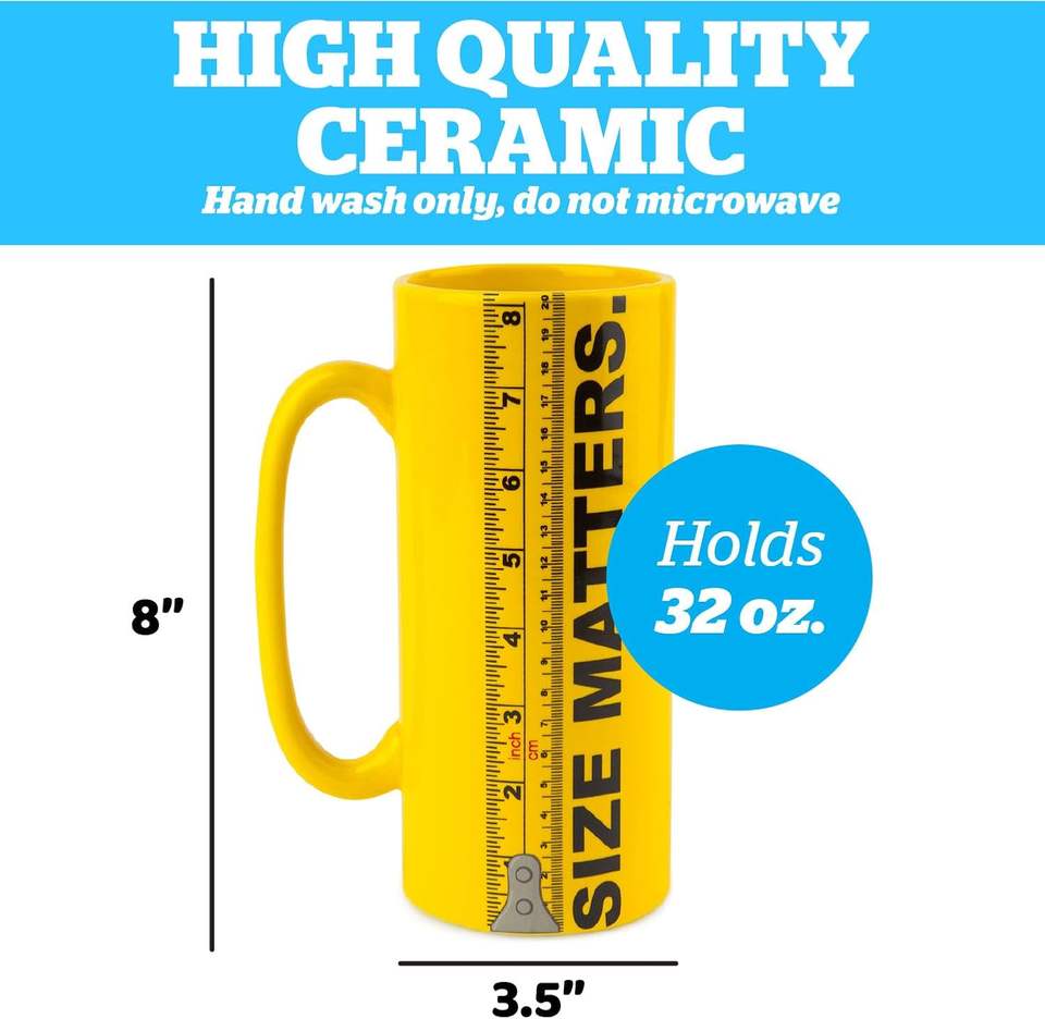 Taza de Café con Regla, Taza de Cerámica Divertida con Regla Real de 8 Pulgadas, Regalo Broma para Adultos y Amantes del Café