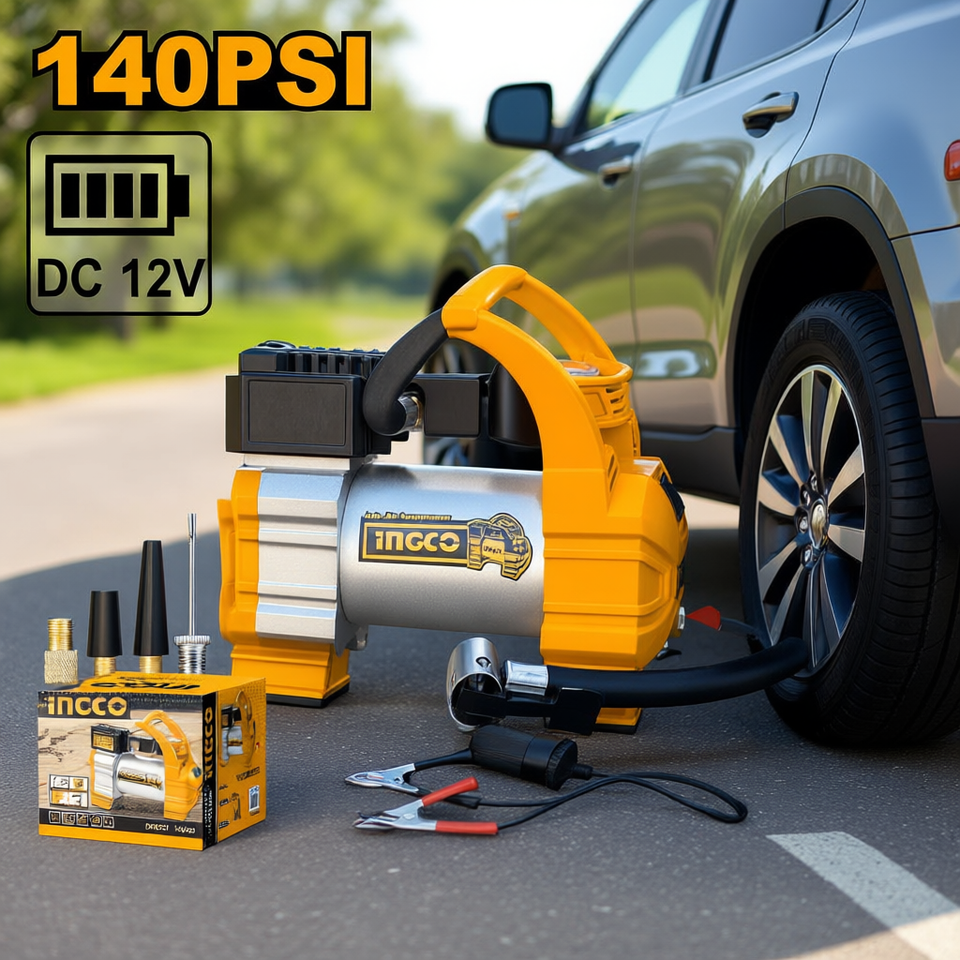 Compresor de aire Inco de 140 Psi y 12 V CC, inflador de neumáticos portátil para coche y motocicleta