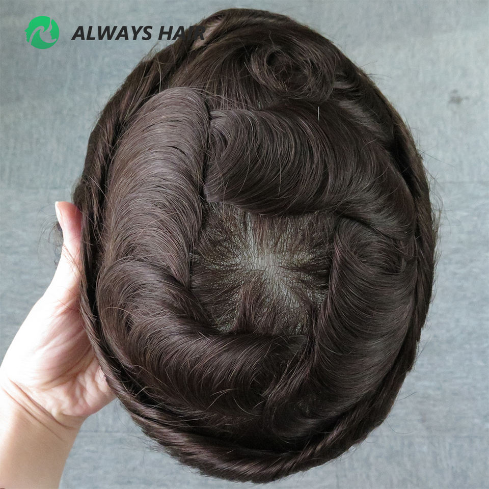 Sistema de cabello Incomparable para hombres, cabello humano indio de piel Superfina, onda Natural, tupé marrón claro