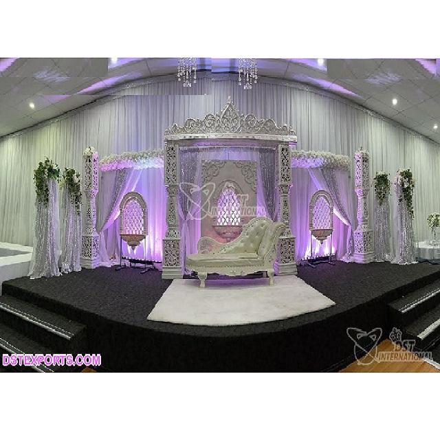 Escenario de recepción de boda india, decoración de escenario Popular y elegante para boda, fusión blanca, escenario de bollwood
