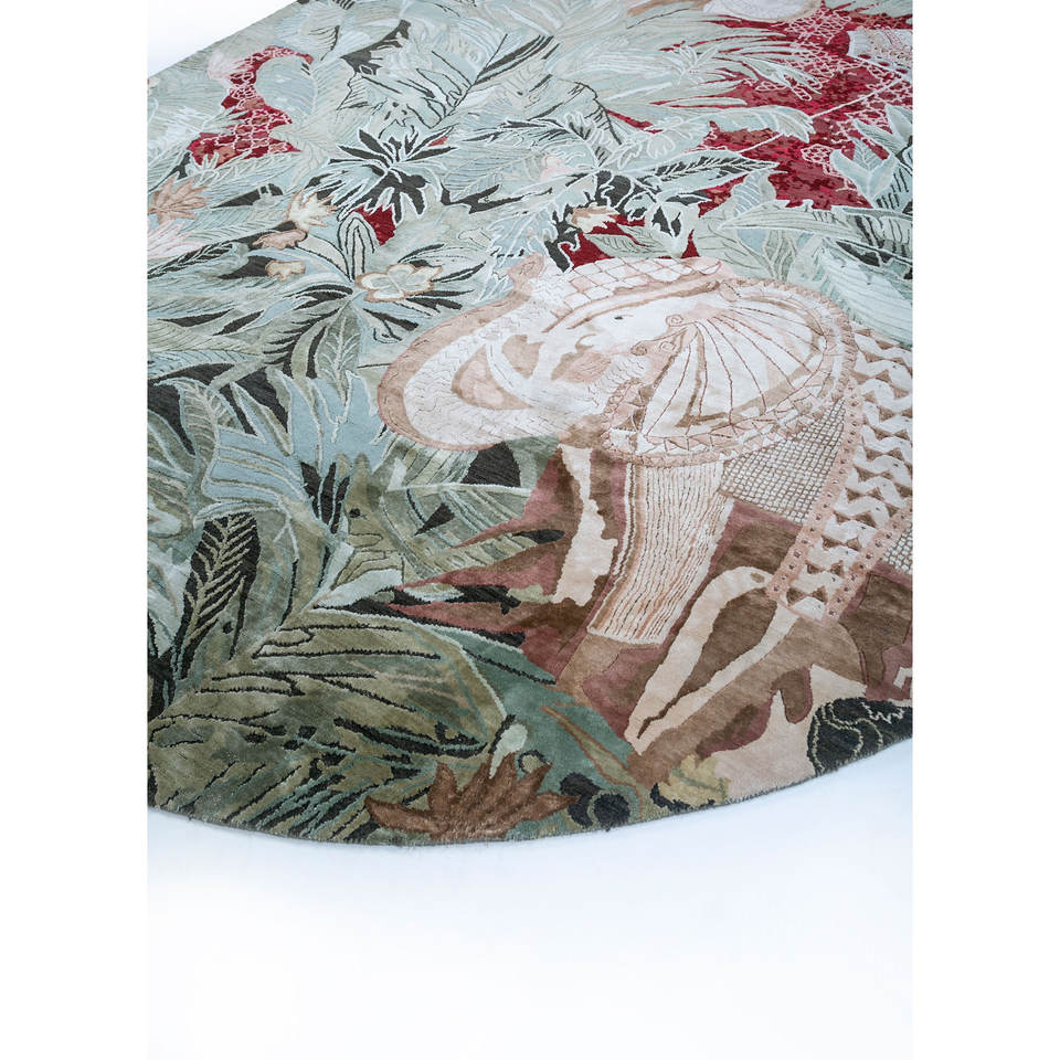 Alfombra de Lana y Seda Anudada a Mano Inde SLR-7069, Verde con Estampado Animal, Rectangular, para Sala de Estar o Pasillo, Modelo Rectangular