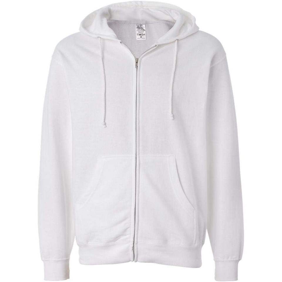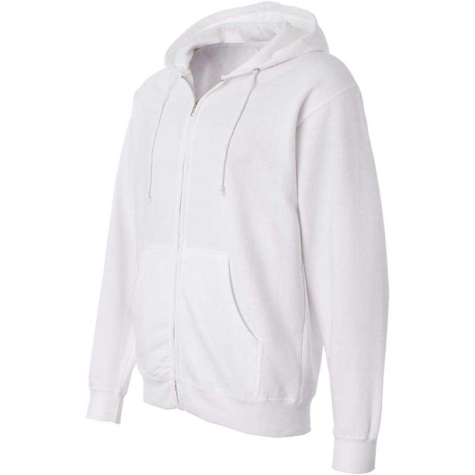 Sudadera con Capucha y Cremallera Completa para Hombre, Peso Medio, Blanca, Talla 'L', Modelo SS4500Z, Bordado 3D, Antiarrugas, Color Sólido, de Independent Trading Co.