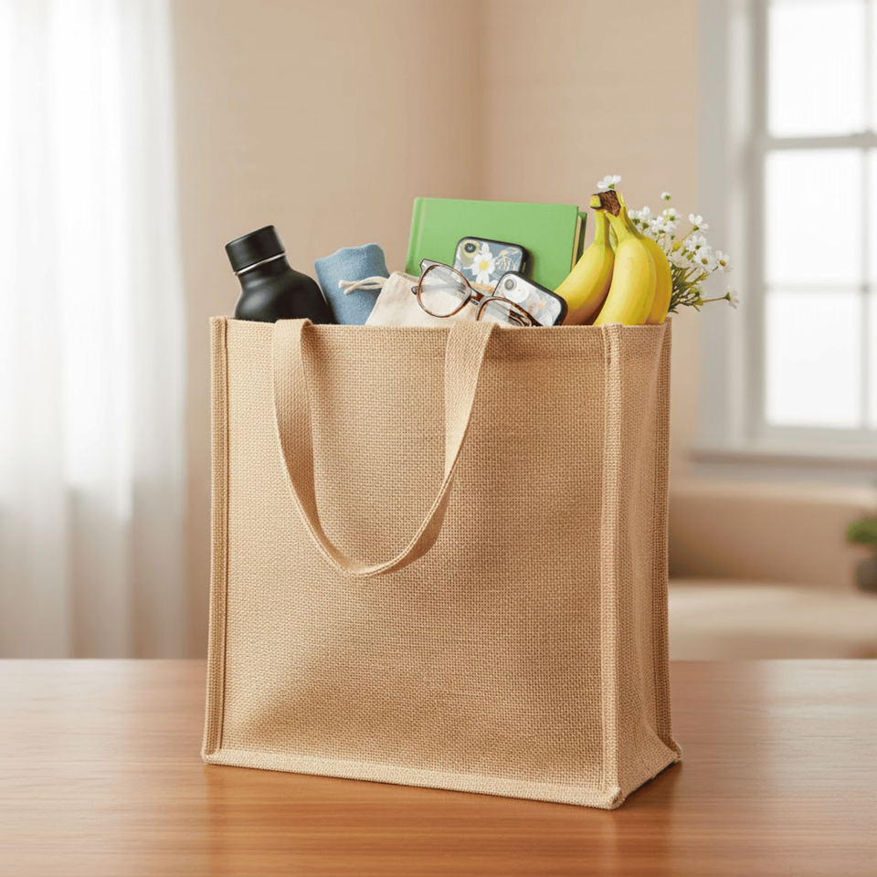 Bolsas de Yute Reciclables Ecológicas de Alta Calidad Personalizadas de Fábrica en India, Bolsas de Compras Bohemias de Moda para Mujer con Cadenas