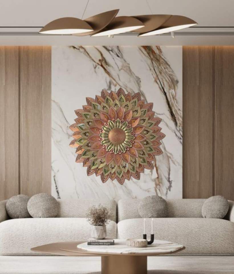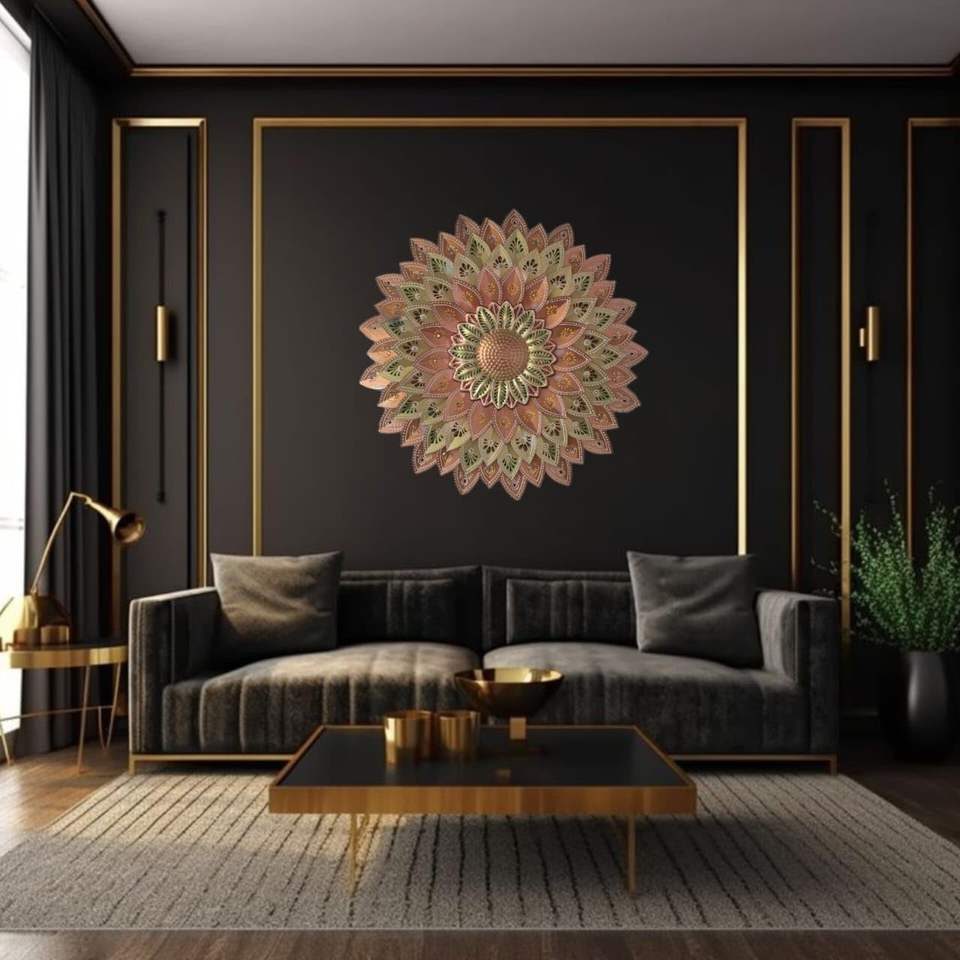 Arte Mural Moderno de Metal Refinado Ecológico de la India, Creación para Espacios de Vida Curados que Buscan una Estética Artesanal Elevada en Armonía