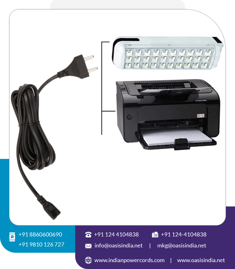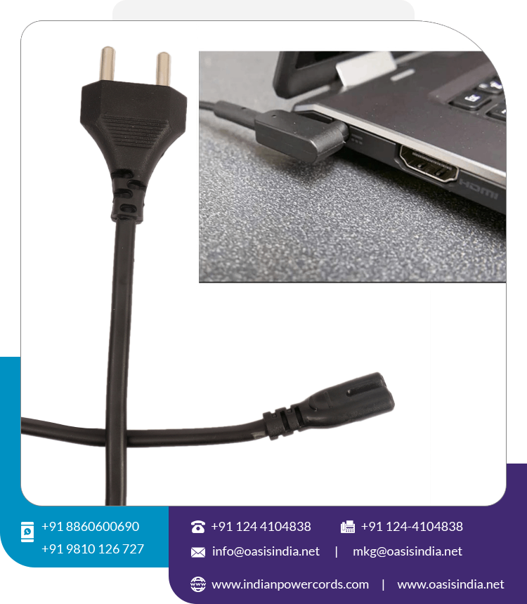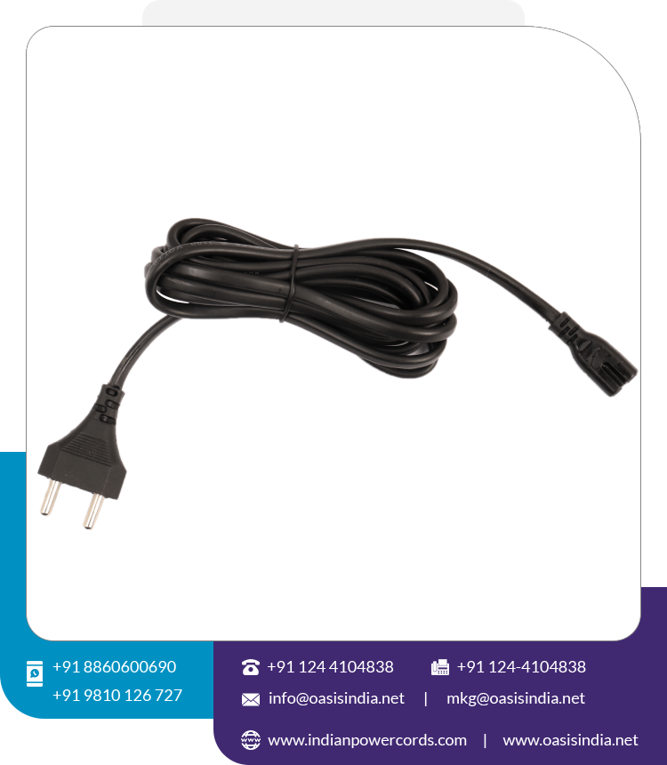 India Venta al por mayor Cable de alimentación de CA de 2 pines Indio a C7 Precio bajo para cámara Portátil Equipo de video/audio Tipo de extremo hembra IEC