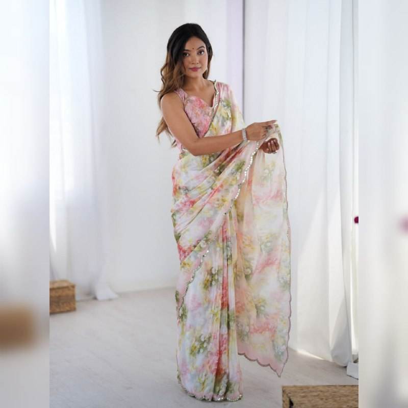 Sari Chinnon de estilo Bollywood tradicional más hermoso de la India, trabajo de bordado de secuencia pesada para mujer, último diseño de ropa de fiesta