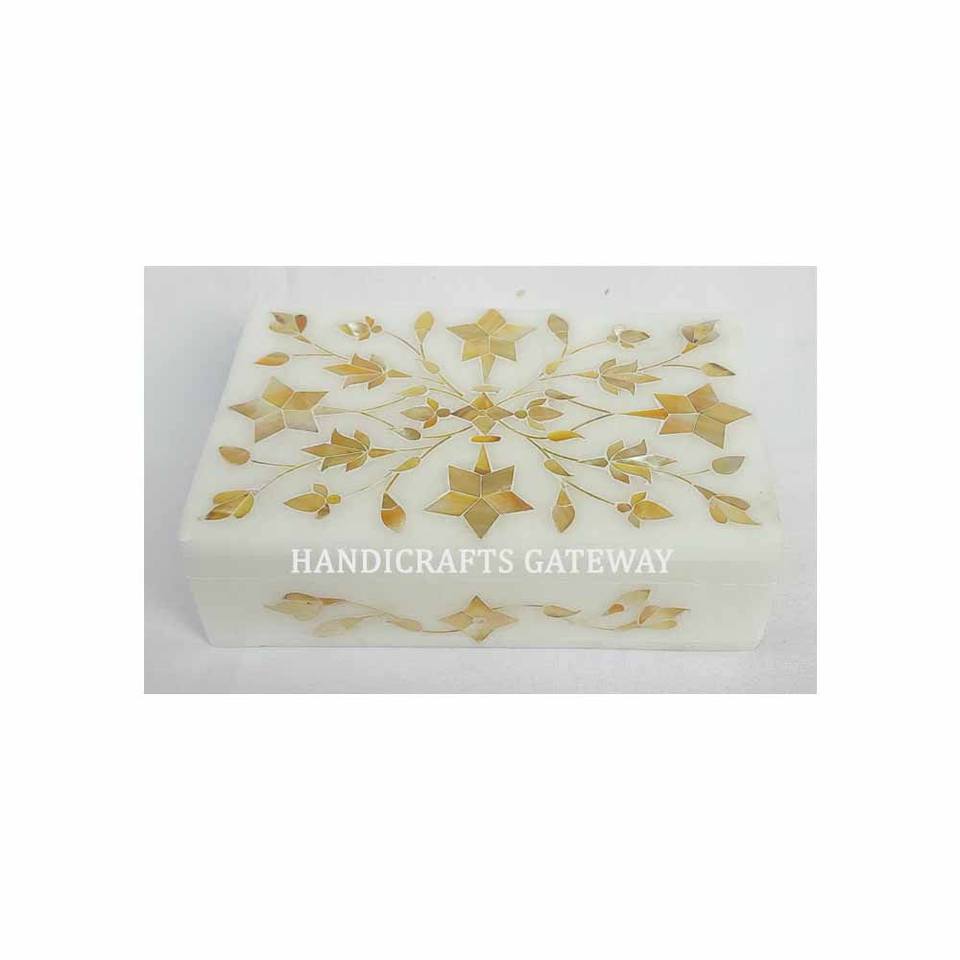 Cajas de joyería rectangulares con incrustaciones de mármol blanco de la mejor calidad de la India para regalos empresariales y decoración del hogar, fabricante de artículos.