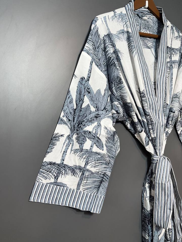 Kimono largo de algodón con estampado artesanal indio para mujer, cuello en V, manga larga, estilo bohemio, para estar en casa, playa o verano.