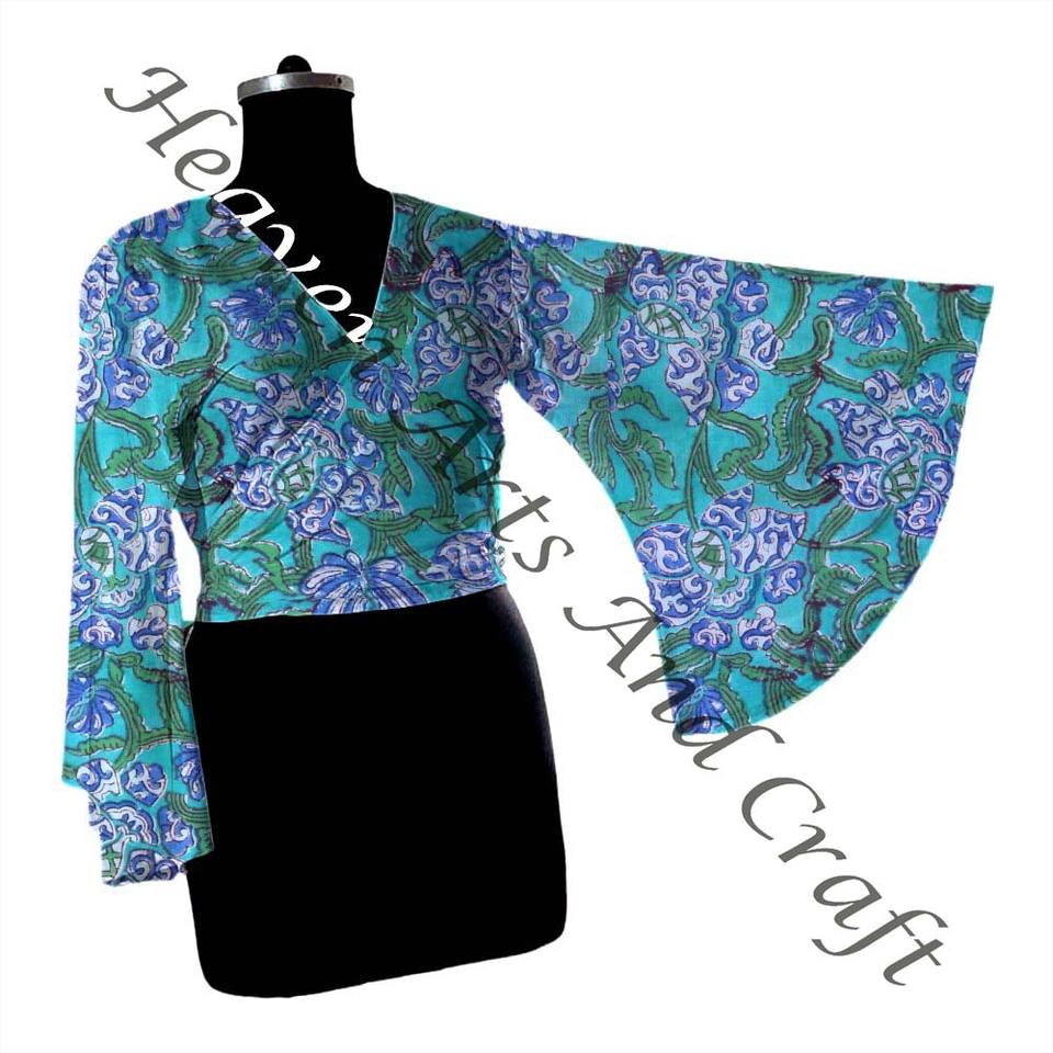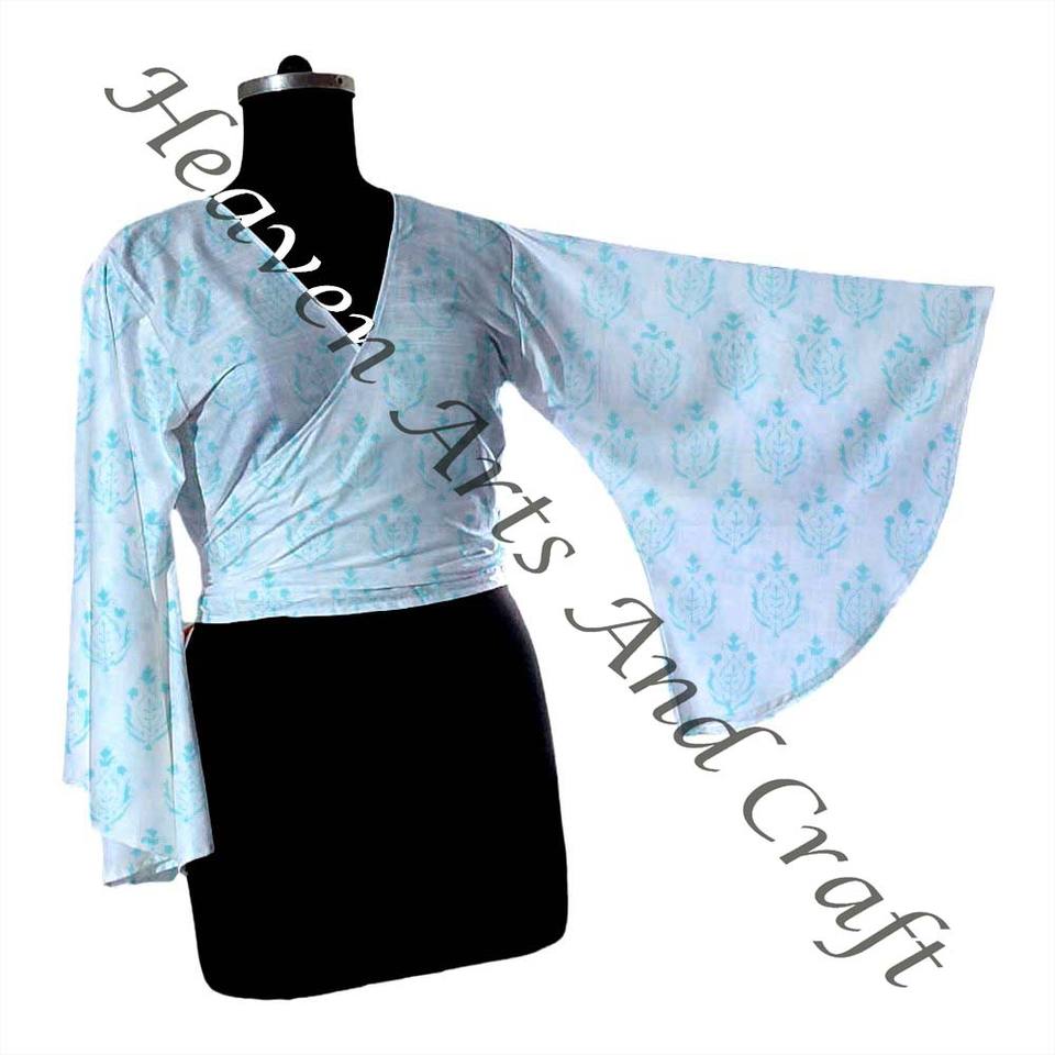 Hand Block Print Cotton Tie Tops Bell Sleeves